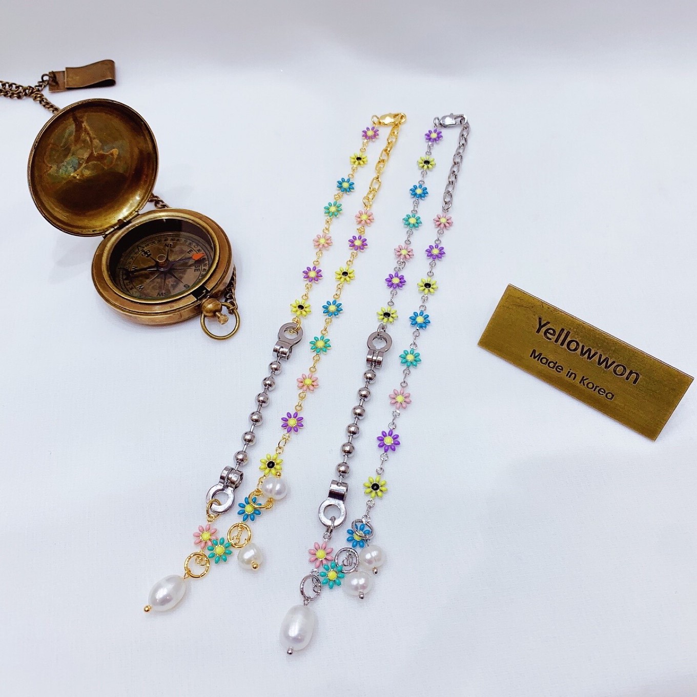 项链💰10000 天然淡水珍珠 花🌸 小雏菊🌼 链条⛓️ 糖果色 珠链 两个颜色