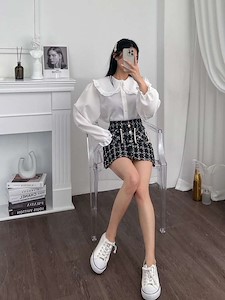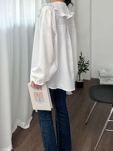 카라와 프릴로 트리밍된 러블리한 블라우스로