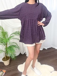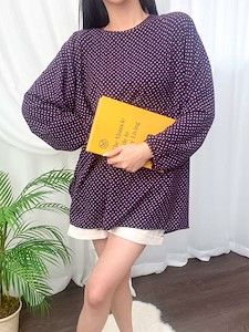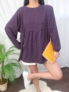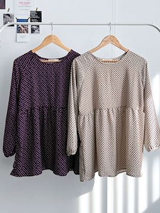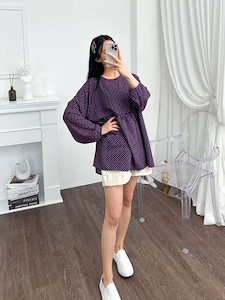 유니크한 사각형 땡땡이 패턴의 블라우스로 비침이 없고 러블리한 셔링 디테일과 봄 가을 입기편한 블라우스^^