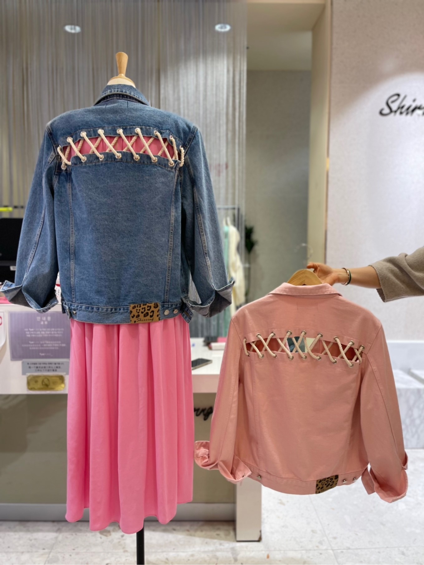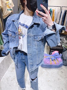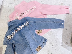 데님 자켓 뒷면 끈조절 가능 어깨 패드잇음