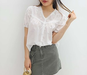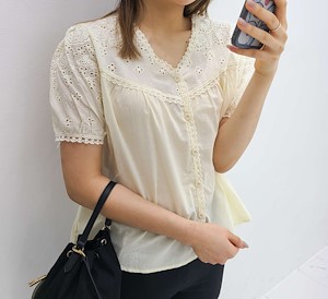 꽃자수펀칭블라우스