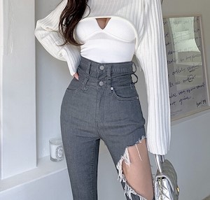 1093 미우 더블단추 스키니