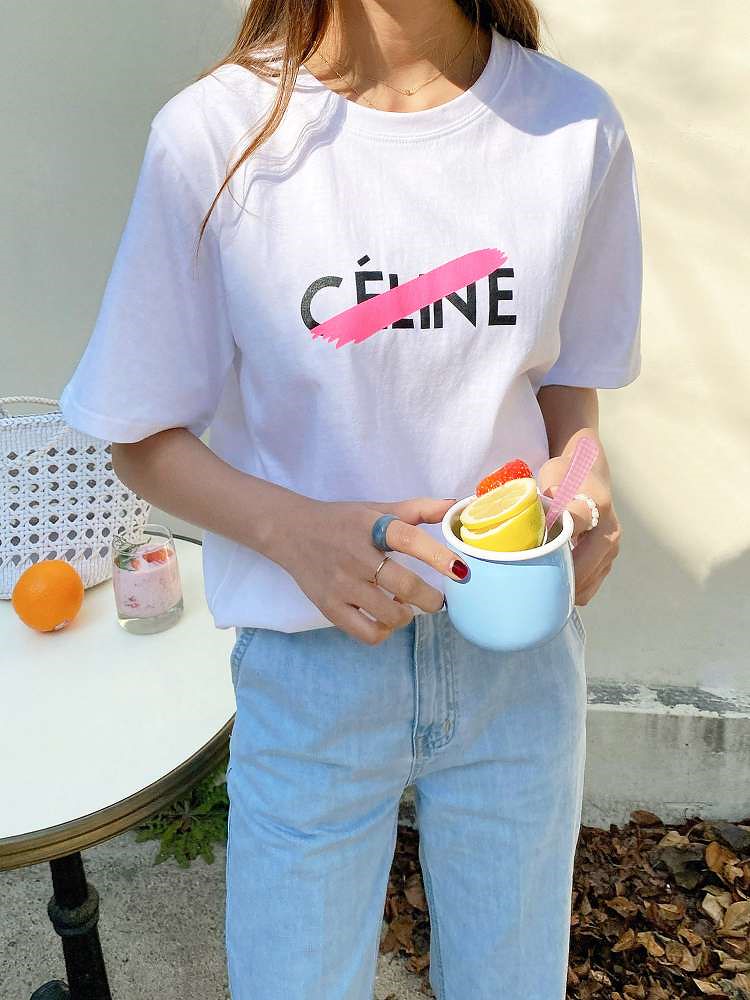 전면에 영문나염에 형광색띠로 포인트를 줬어요