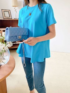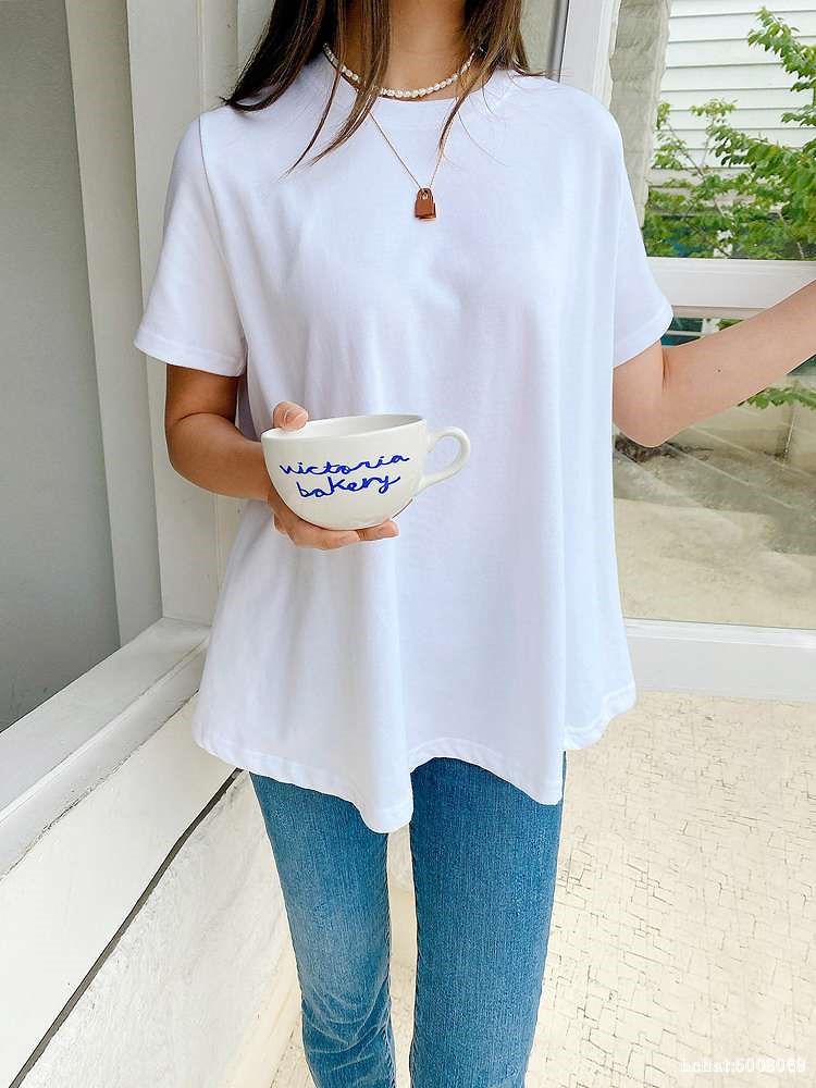 *덤블(원단이 비틀어지지 않게 잡는 작업)워싱면으로 제작된 고급스런 A라인패턴의 티예요