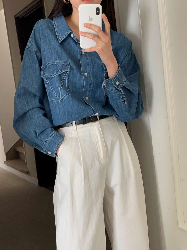 𝐃𝐫𝐞𝐬𝐬 𝐑𝐨𝐨𝐦 - 트라이앵글 데님 셔츠