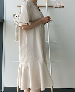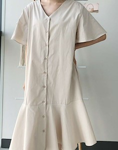 앞쪽 전체 단추오픈으로 입고 탈착하기 편하며 소매와 밑단의 프릴로 러블리~ 여유있는 넥라인으로 날씬해보이며 색상은 연한베이지 연한소라색으로 은은하면서 튀지않은 cotton 100% 원피스~^^