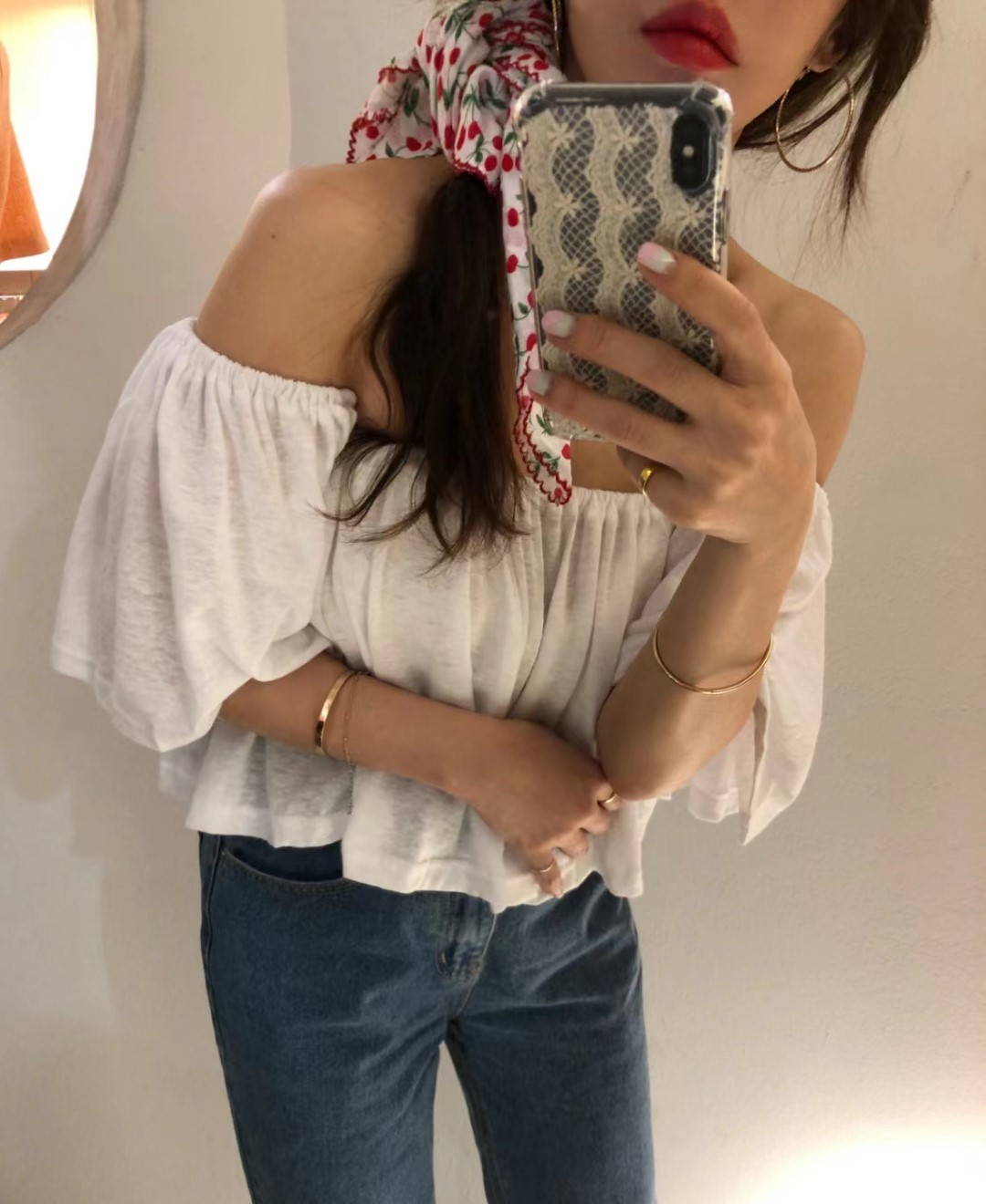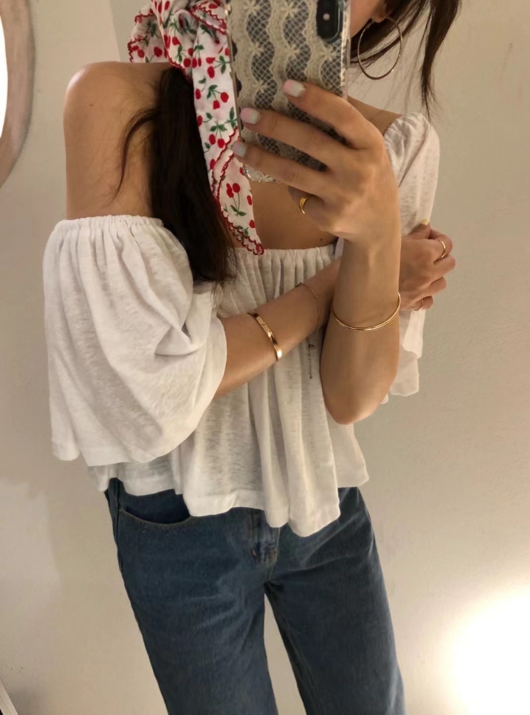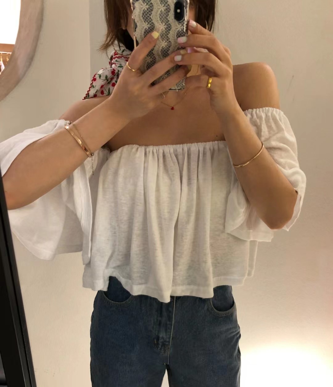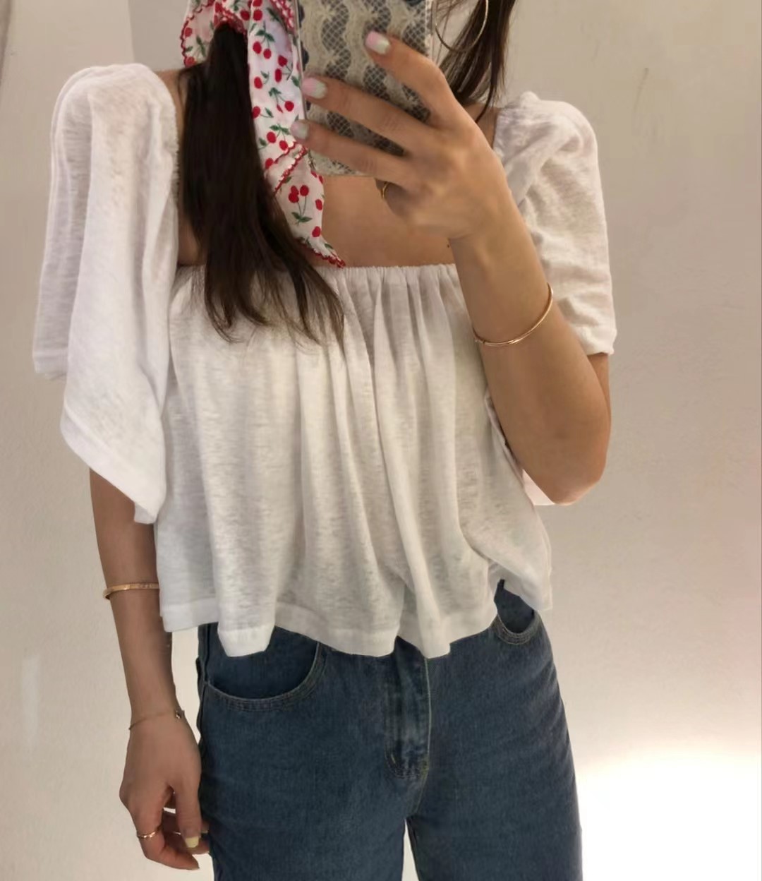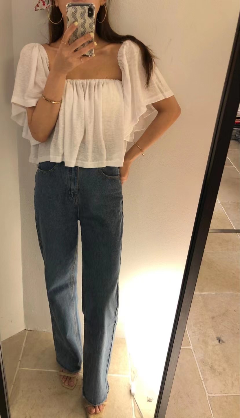 吊带 2022夏季新款白色锁骨一字肩甜美超仙洋气雪纺衫