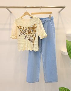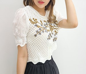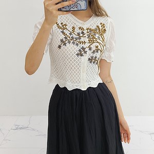 꽃나무 뜨게 블라우스