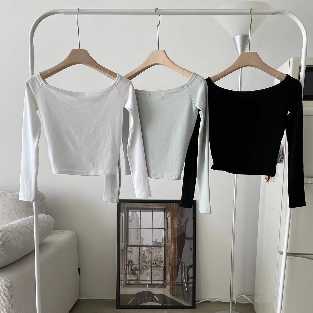 图款 富有弹力 一字肩 深v