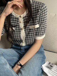 𝐃𝐫𝐞𝐬𝐬 𝐑𝐨𝐨𝐦 . 비쥬 트위드 반팔 니트