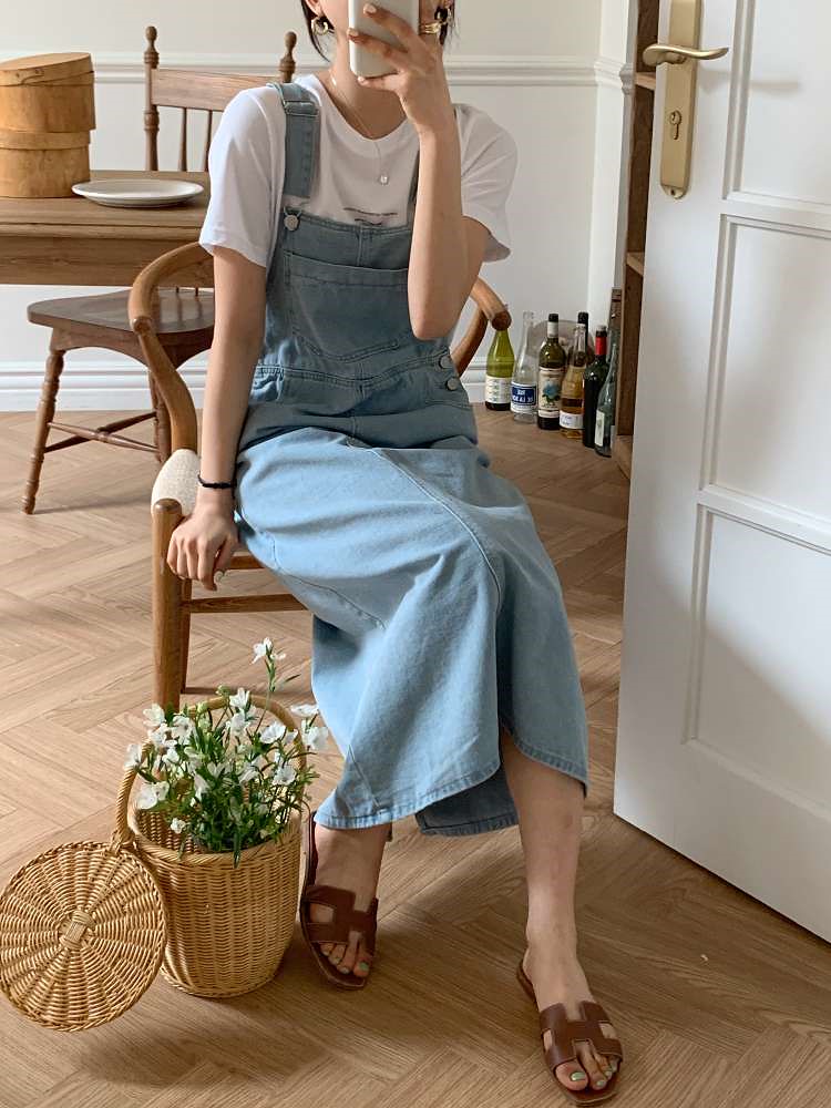 𝐃𝐫𝐞𝐬𝐬 𝐑𝐨𝐨𝐦 . 파우더 데님 멜빵 원피스