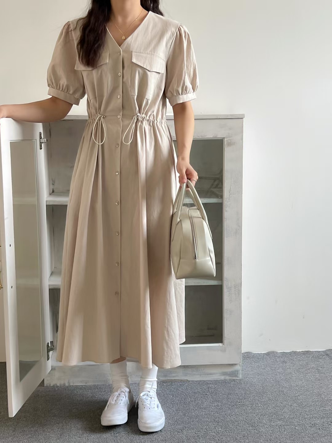 裙子 夏季收腰单排扣连衣裙 时尚潮流