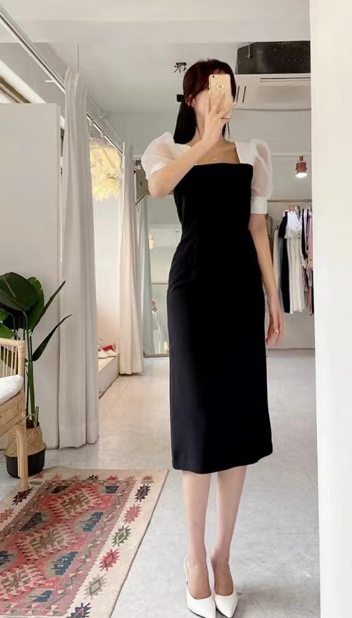 裙子 夏季新款黑白拼接连衣裙,时尚女款 翻译