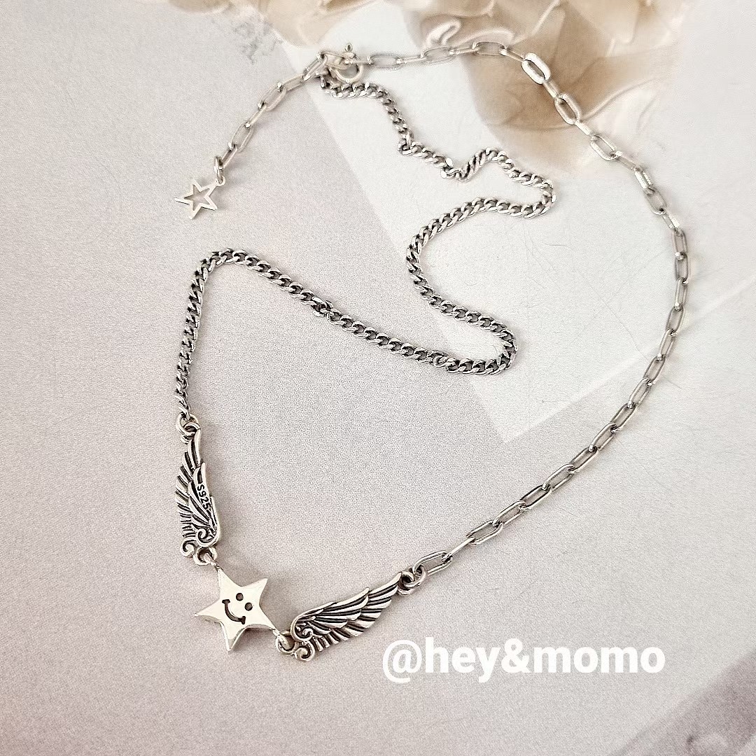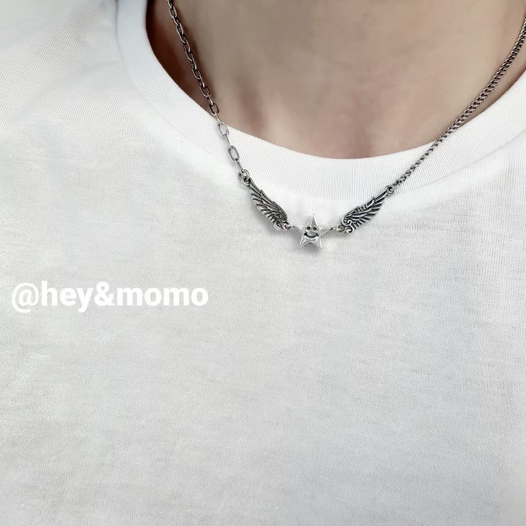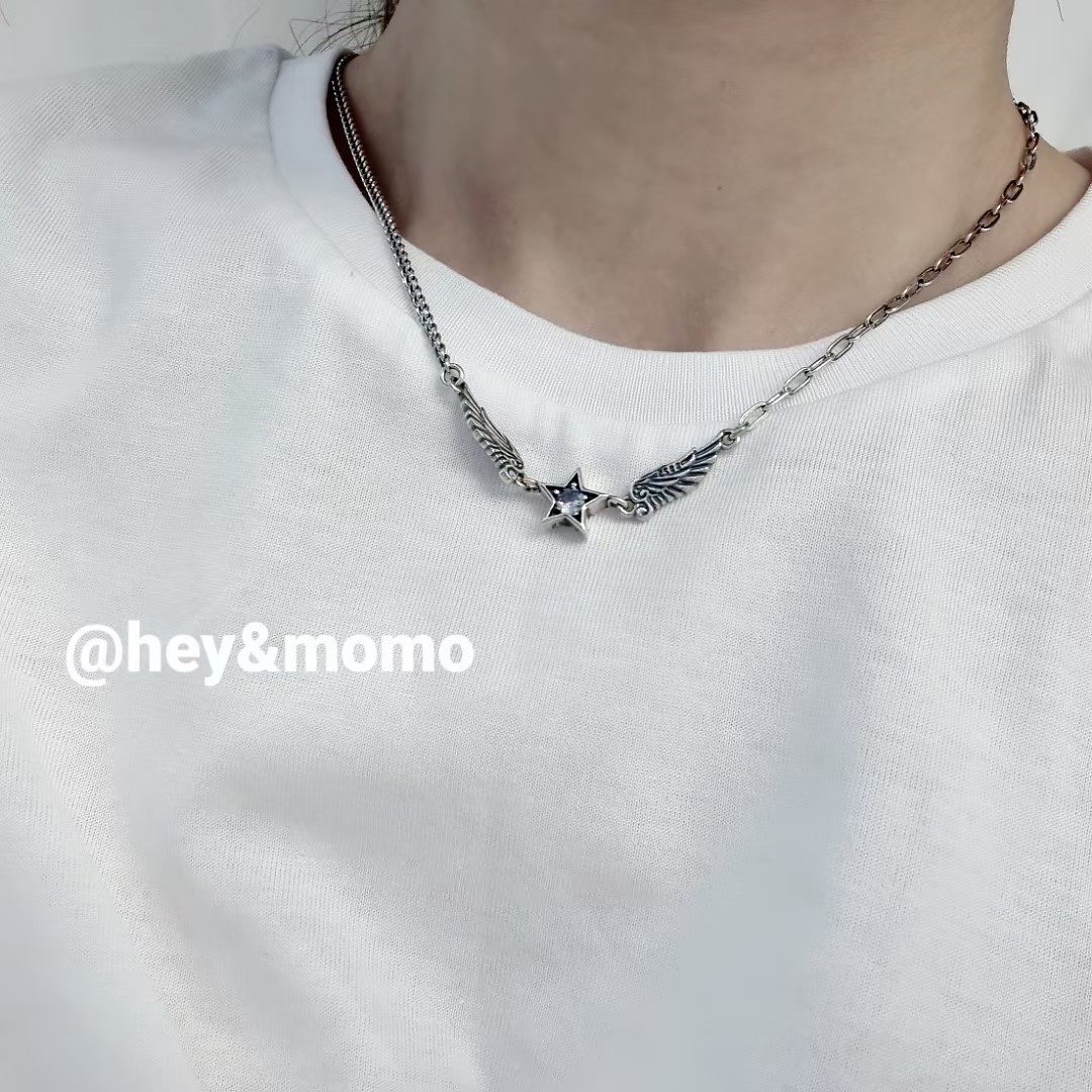 项链 ⚪925银 做旧重工 坦克链+别针链 五角星 翅膀项链32000