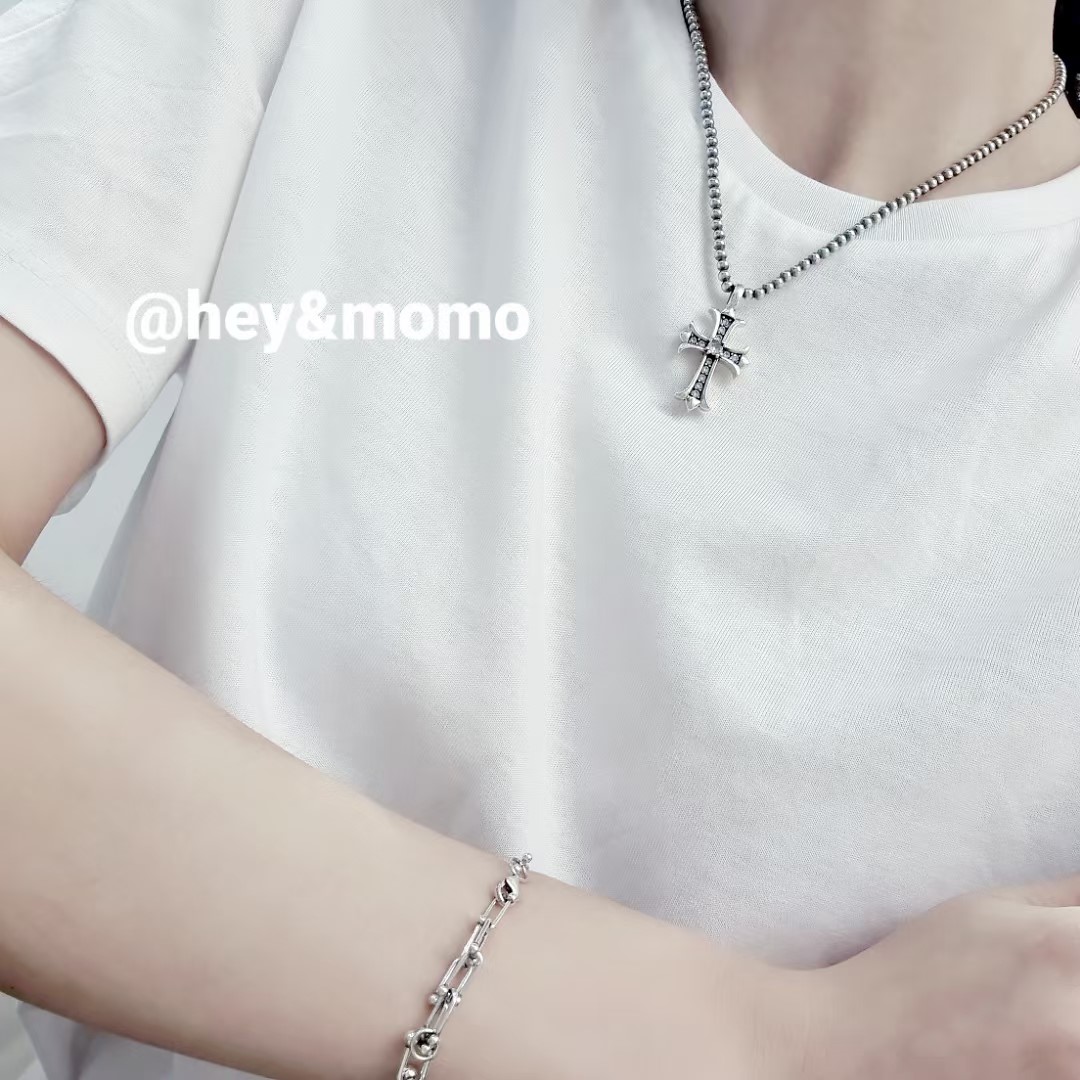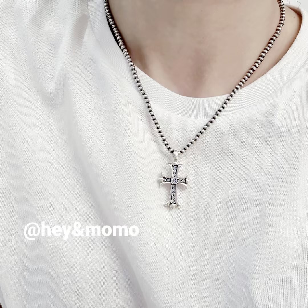 项链 ⚪925银 重工 做旧 算珠链 施华洛水钻 十字架项链52000