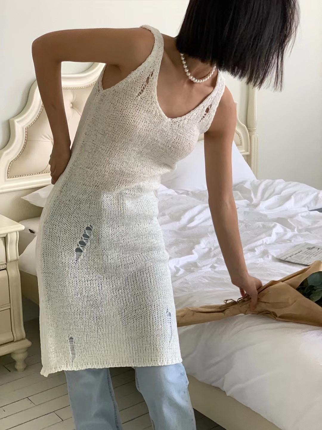图款 镂空设计风格吊带连衣裙