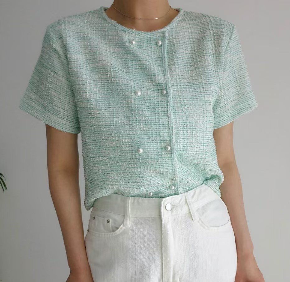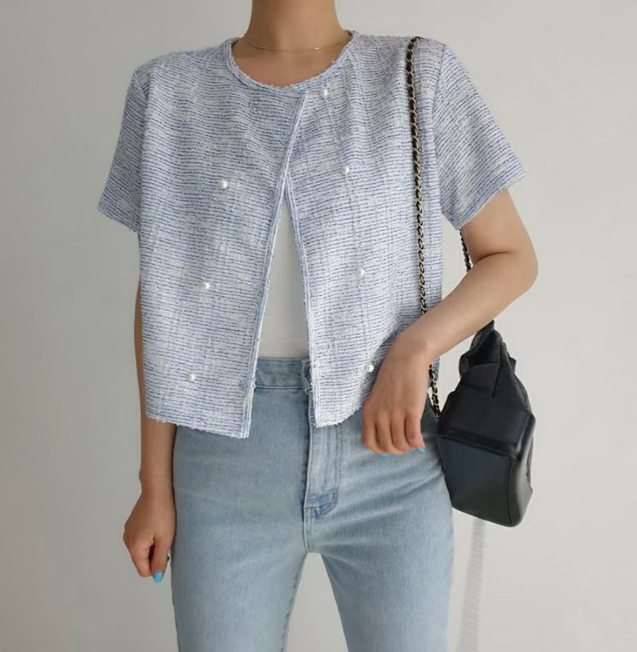 图款 珍珠双排扣开衫