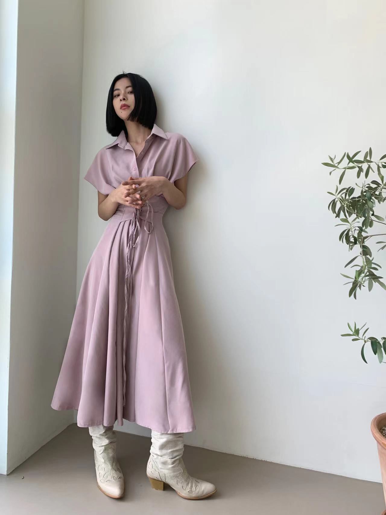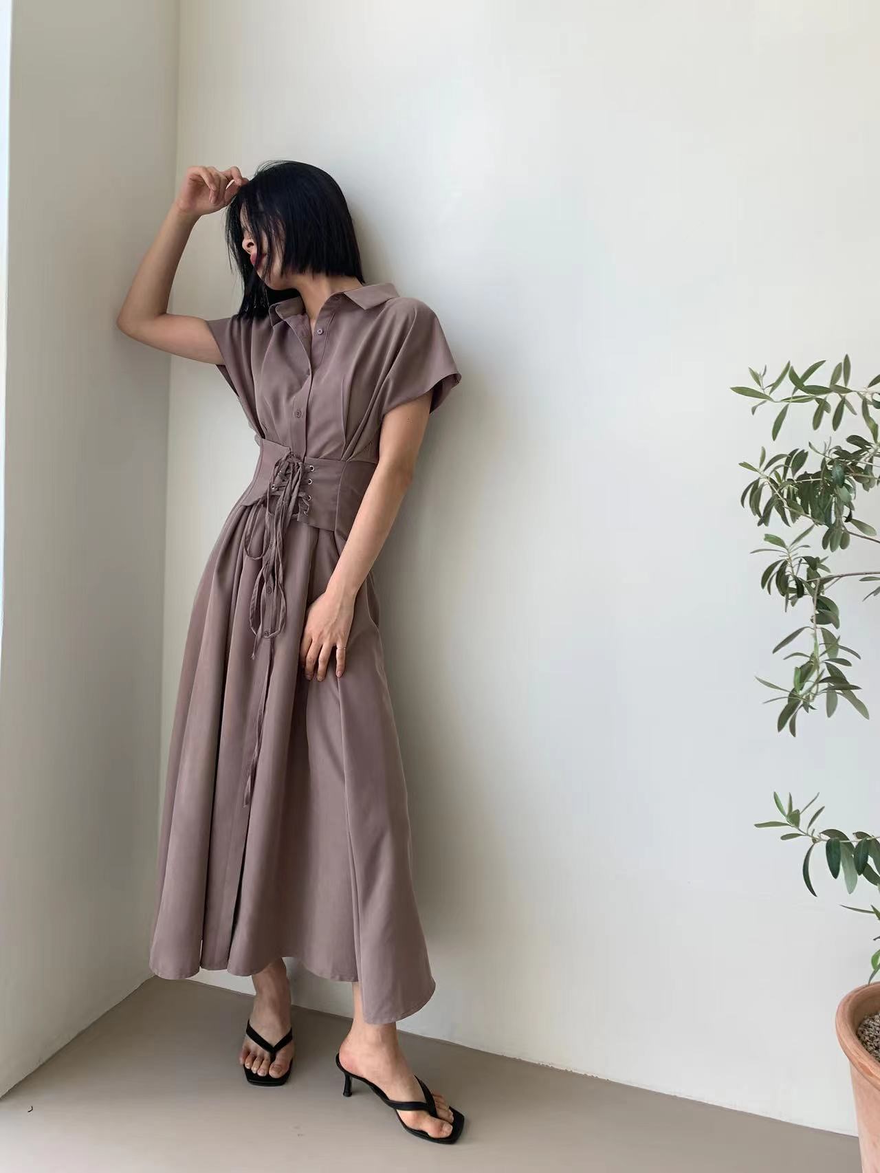 图款 系带收腰时尚连衣裙