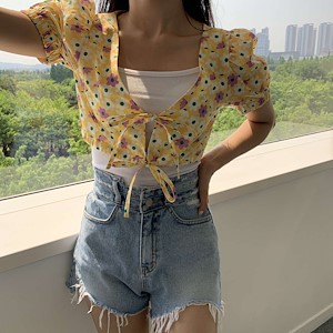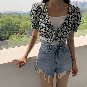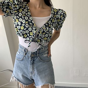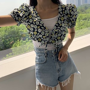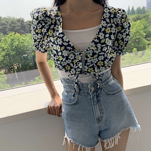 플라워 가디건 블라우스