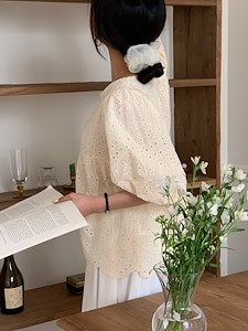 Dress room 2022 ss 데이지 레이스 반팔 블라우스