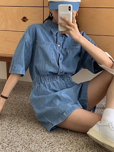 Dress room 2022 ss 마크 데님 점프수트