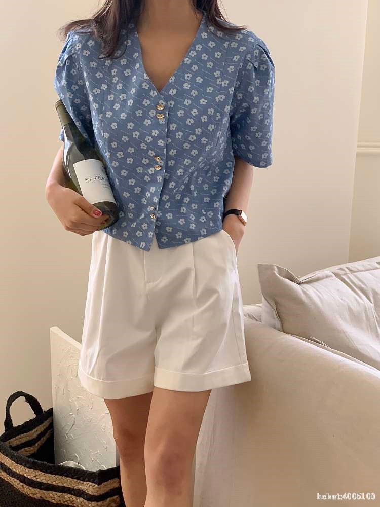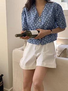 当前位置:首页 > 衬衫 > Dress room // 플라워 데님 반팔 블라우스