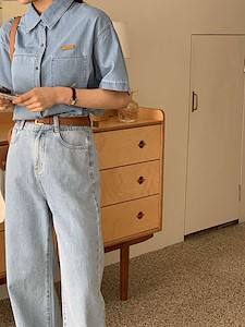 𝙳𝚛𝚎𝚜𝚜 𝚁𝚘𝚘𝚖 𝟸𝟶𝟸𝟸 𝚜/𝚜 레더 패치 데님 셔츠