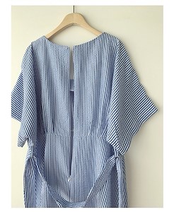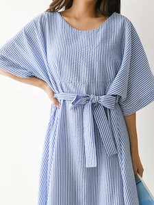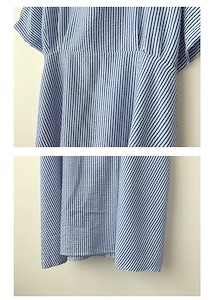 스트라이프 코튼폴리혼방 지짐이 원단으로 시원하고 피부에 달라붙지 않으며 낙낙한 넥라인과 뒷직퍼로 편하게 탈착가능~ 허리끈으로 원하는 스타일링이 가능한 원피스