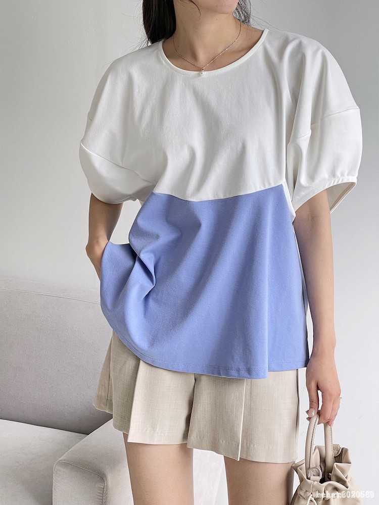 배색벌룬 티
