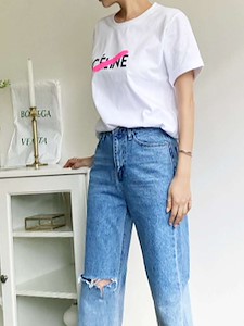 전면에 영문나염에 형광색띠로 포인트를 줬어요