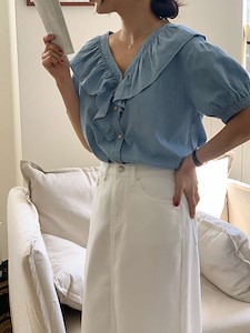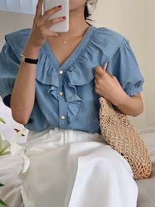 𝙳𝚛𝚎𝚜𝚜 𝚁𝚘𝚘𝚖 𝟸𝟶𝟸𝟸 .데님 프릴 블라우스