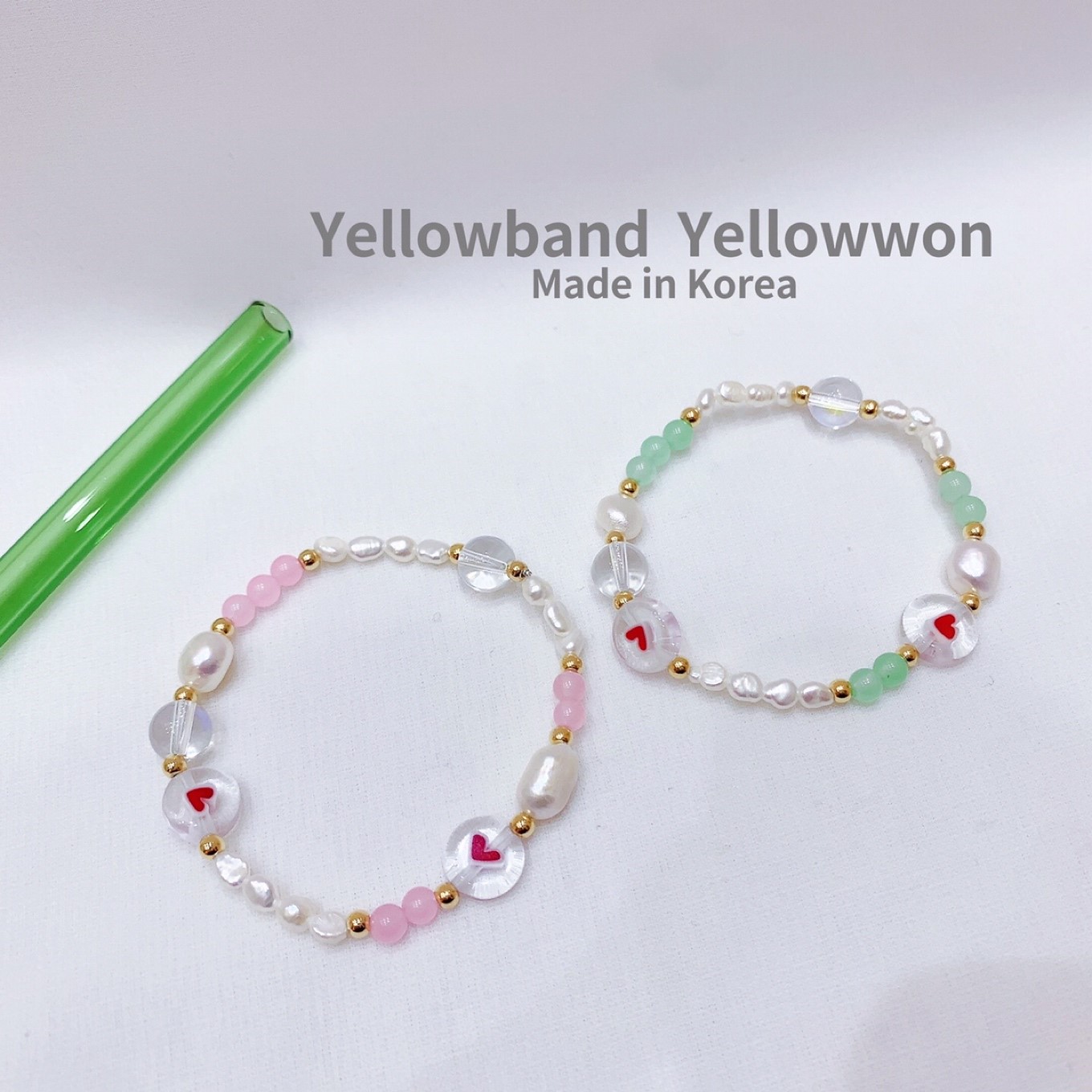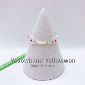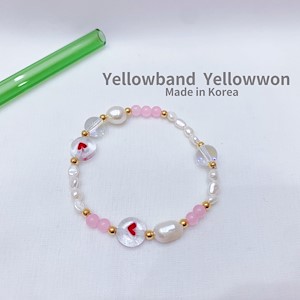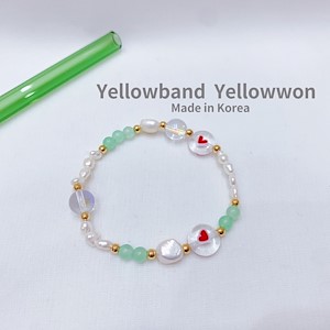 手链 天然淡水珍珠 原石 弹力绳 爱心❤️ 金珠 镭射 透明 拼色 两个颜色