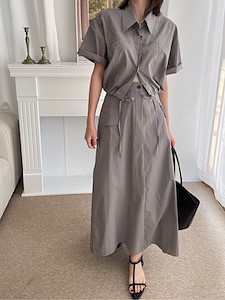 터널 크롭 남방 포켓롱 스커트 세트