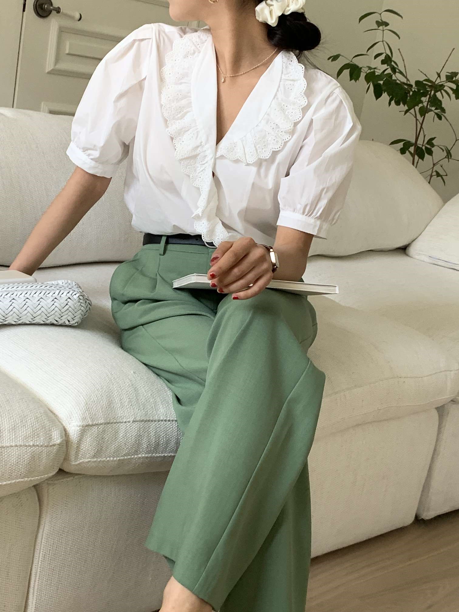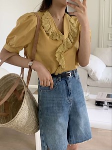 𝙳𝚛𝚎𝚜𝚜 𝚁𝚘𝚘𝚖 / 브릭 코튼 프릴 블라우스