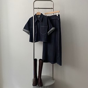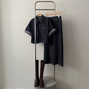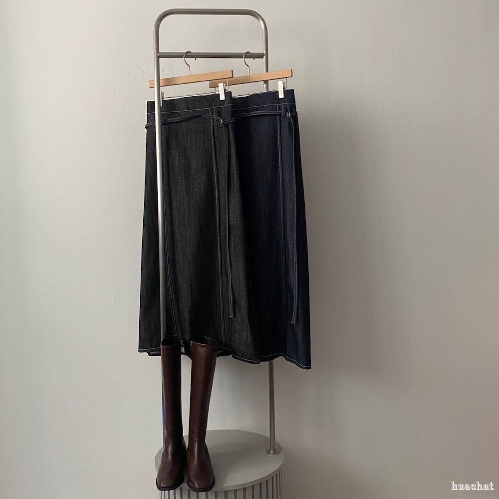 데님 핀턱 스커트