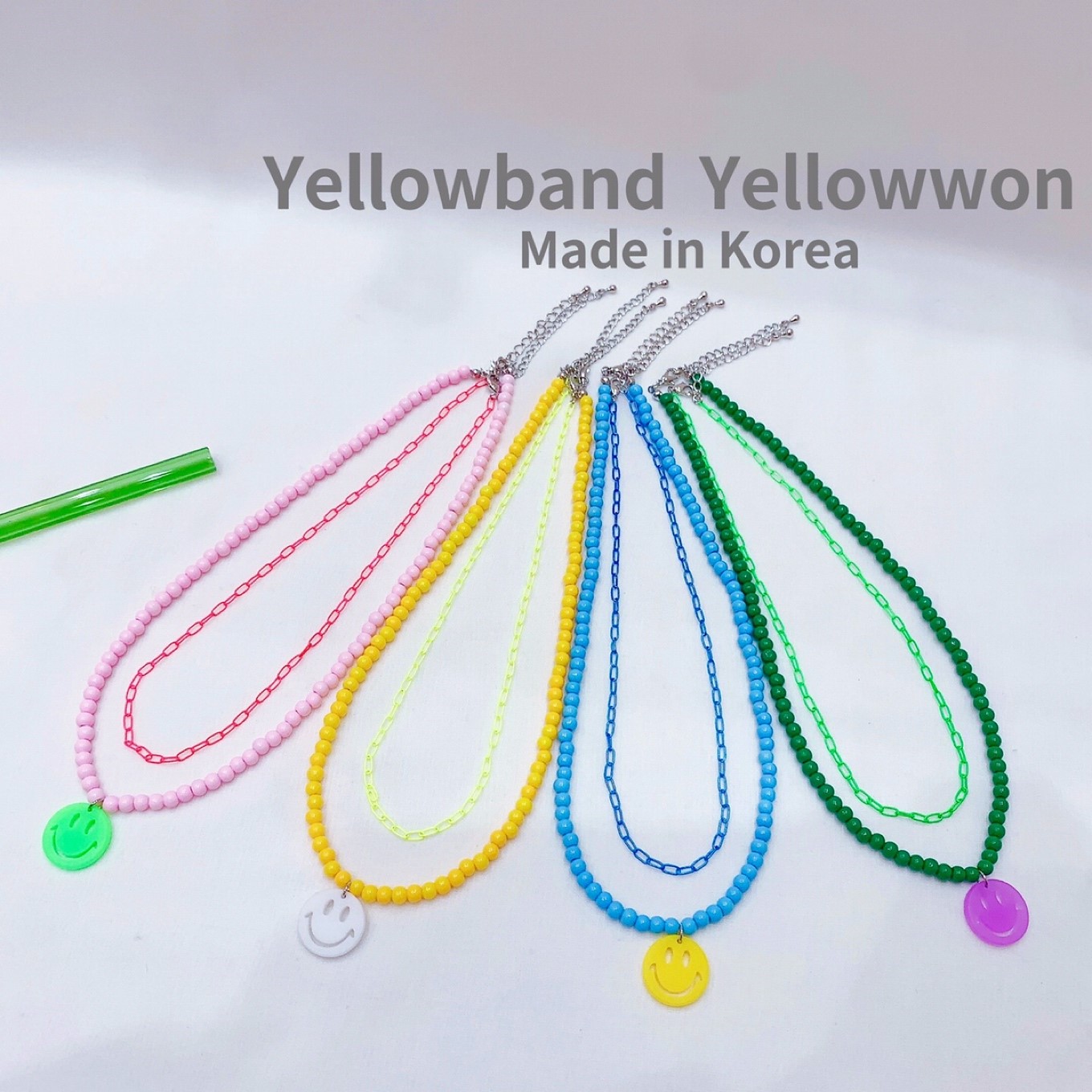项链 笑脸 链条 珠链 荧光色 糖果色 亚克力 可分开 四个颜色