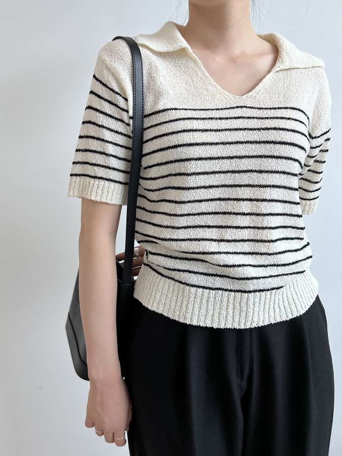 스트라이프 니트 탑 st knit top