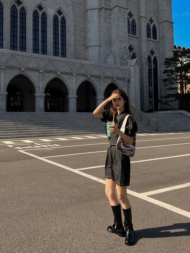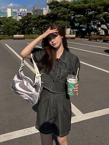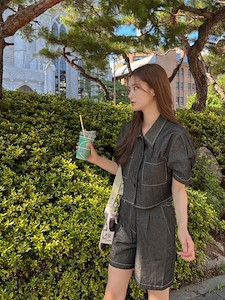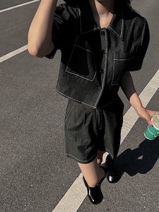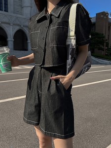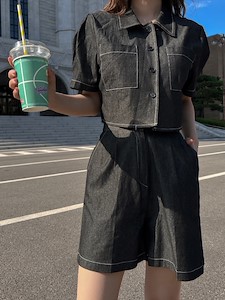데님크롭 하프 세트