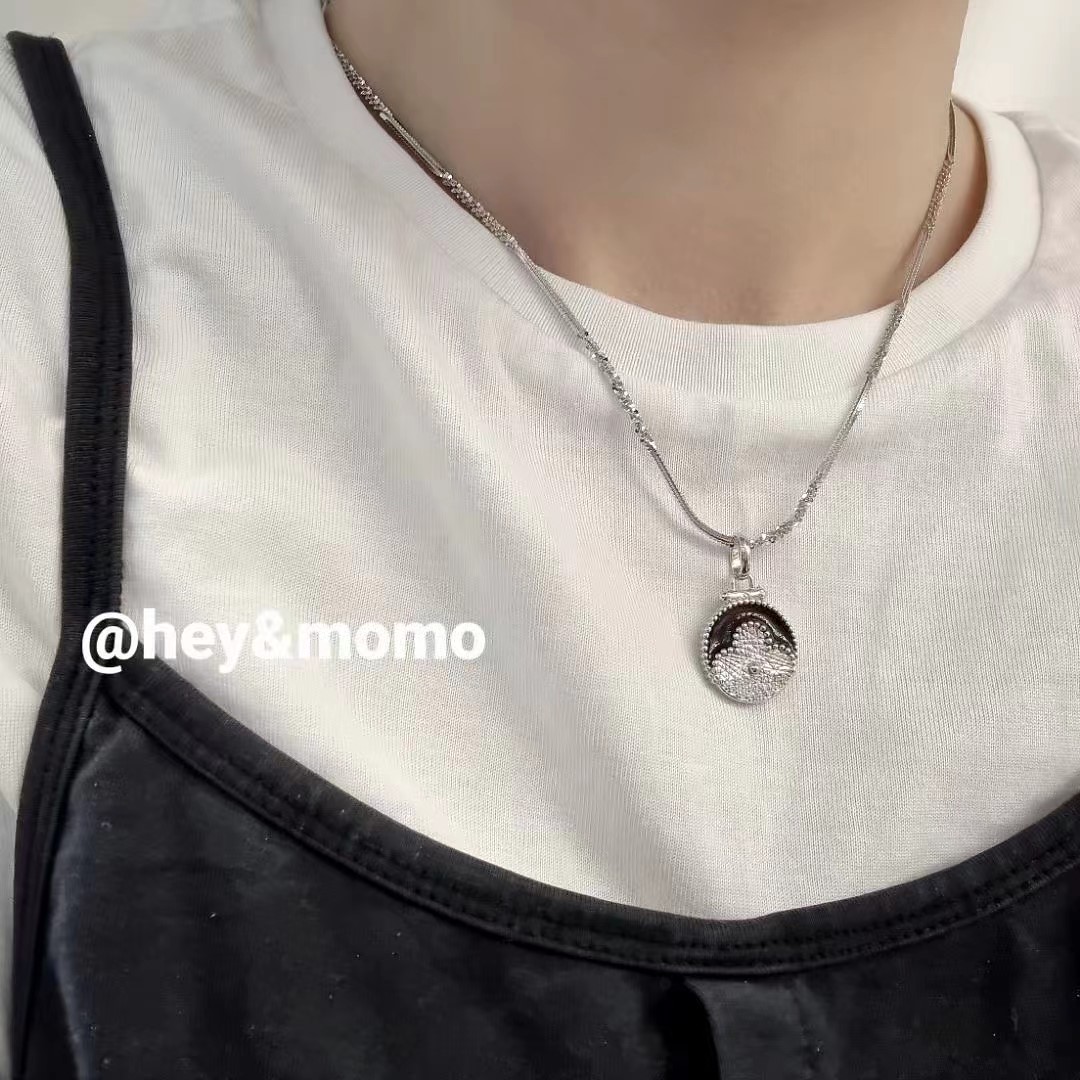 图款 ⚪️925银 意大利工艺银 老花圆牌项链28000