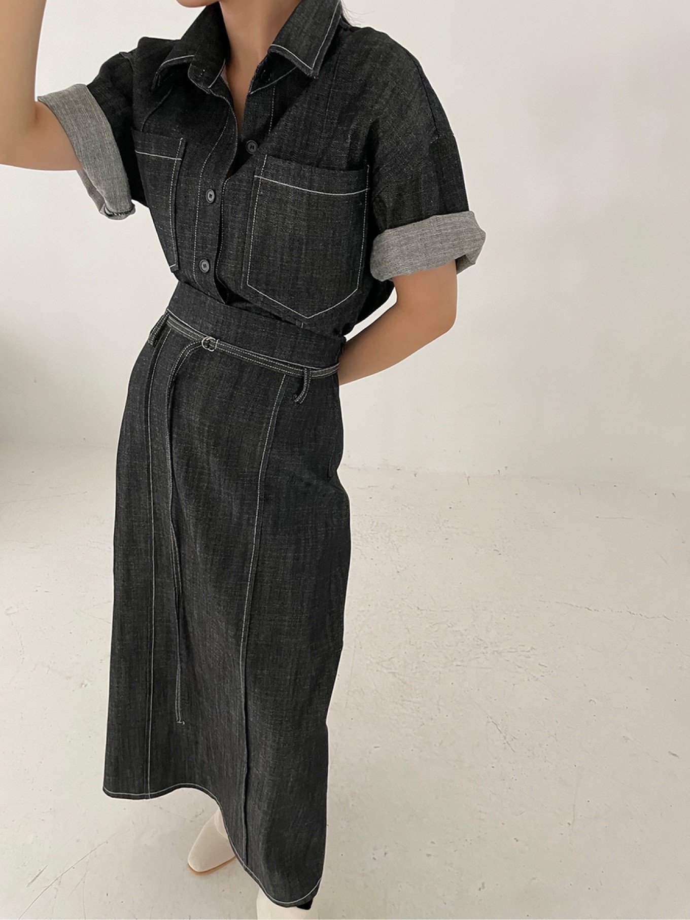 데님 핀턱 스커트1