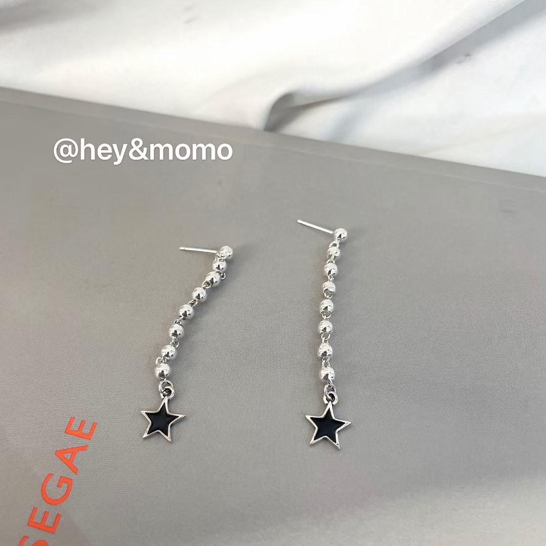 图款 ⚪️925银 重工实心圆豆豆 黑玛瑙五角星 长款耳钉19000