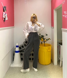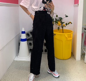 오버팬츠 - 뒷밴딩 와이드 슬랙스 팬츠 국내생산