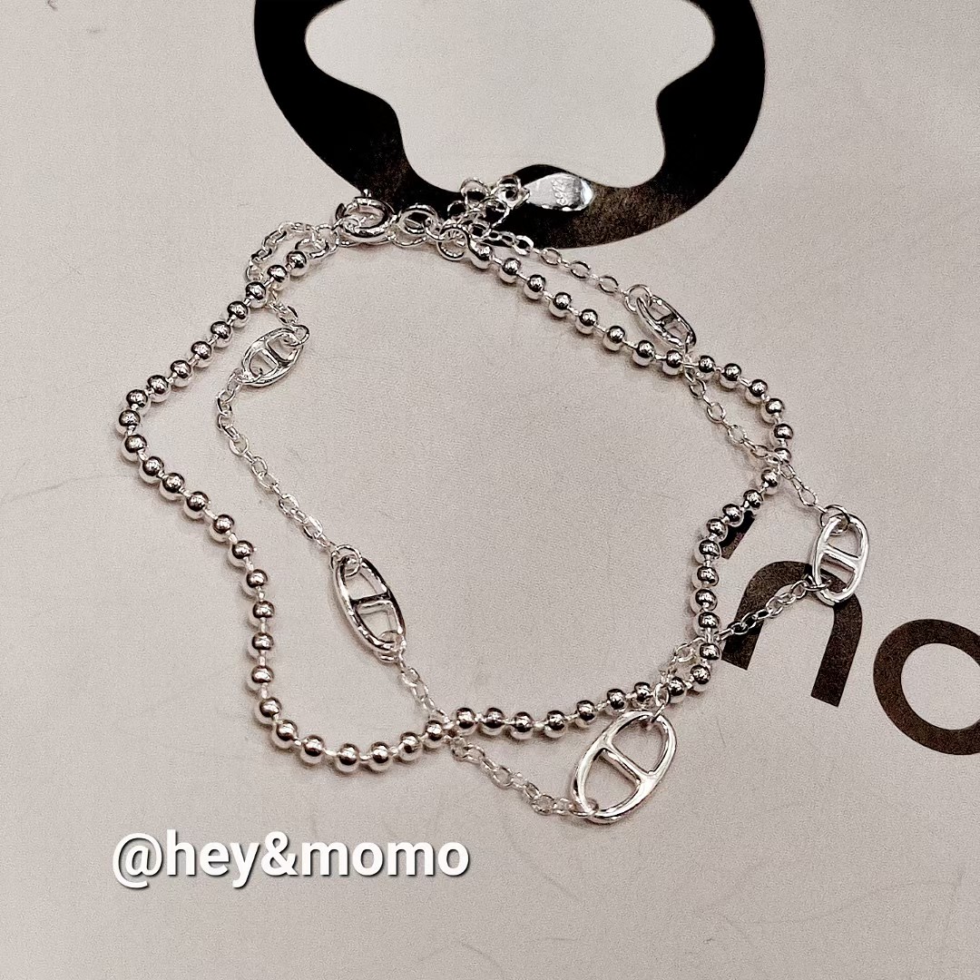 图款 ⚪️925银 简约百搭 亮白银 双层 猪鼻手链14000