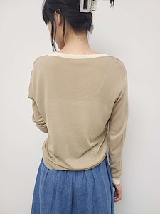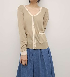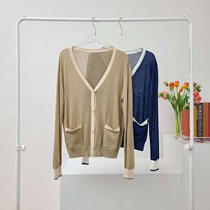배색 진주가디건