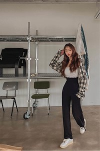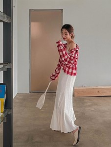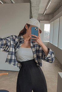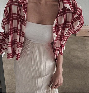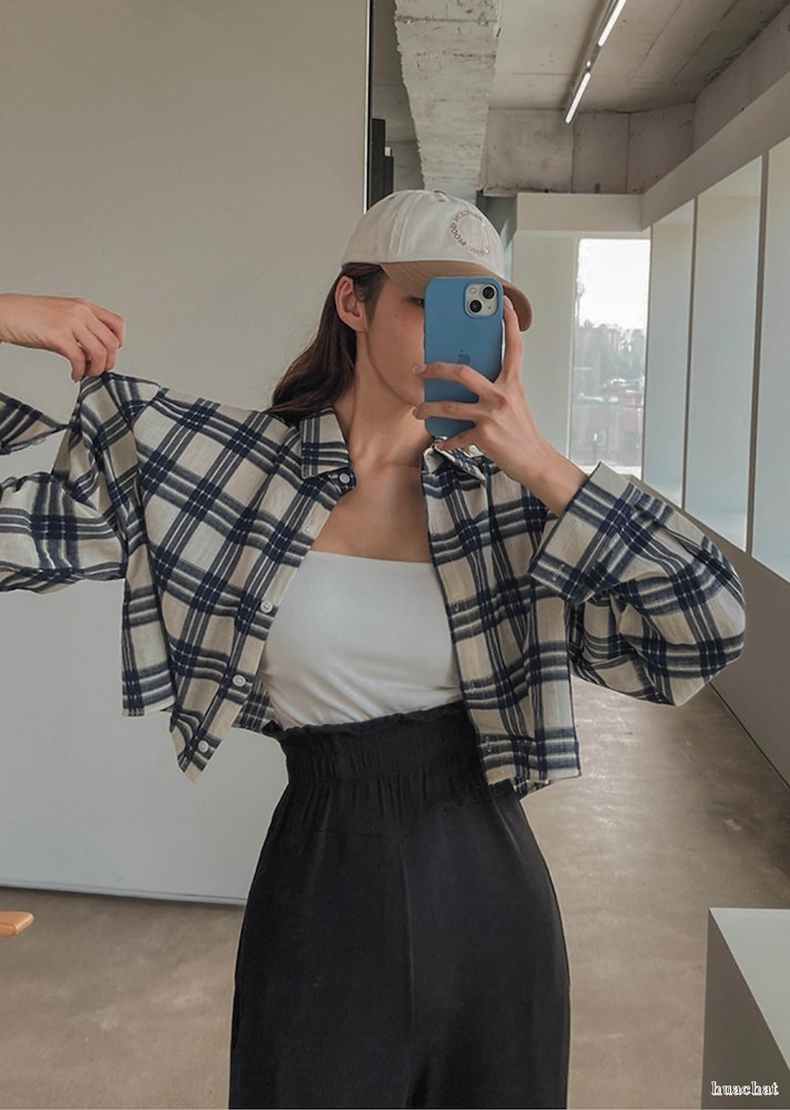 빈 체크 크롭 셔츠
