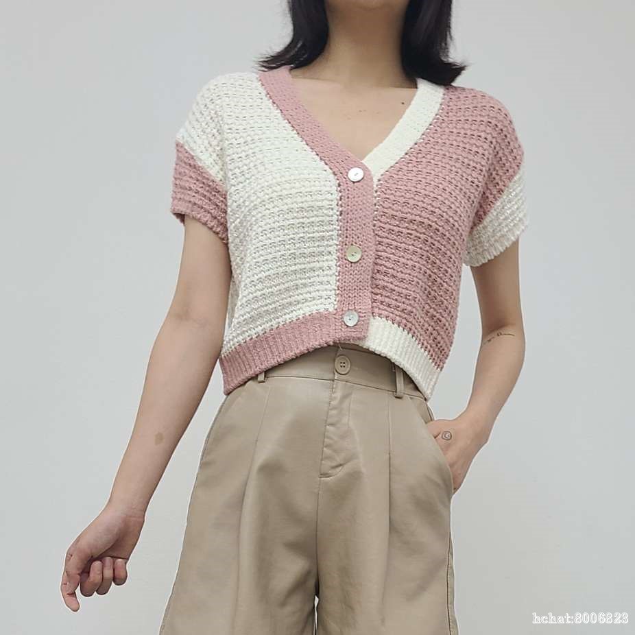 배색반팔가디건1