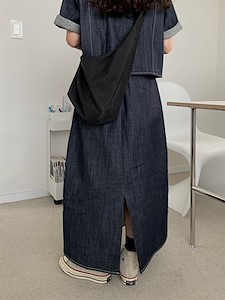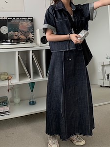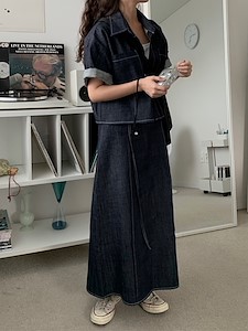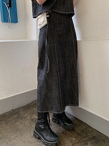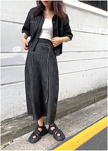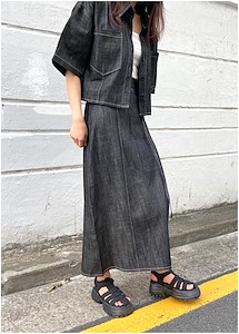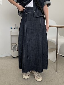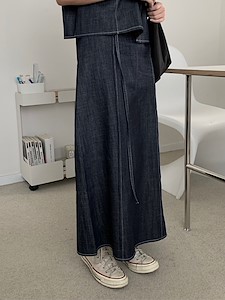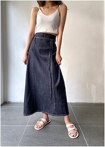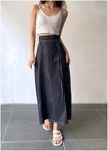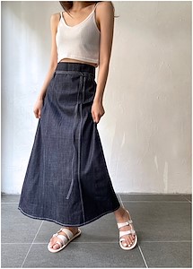 데님핀턱 밴딩 스커트