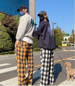 신상, 모직체크바지, 밴딩바지, 고무줄바지