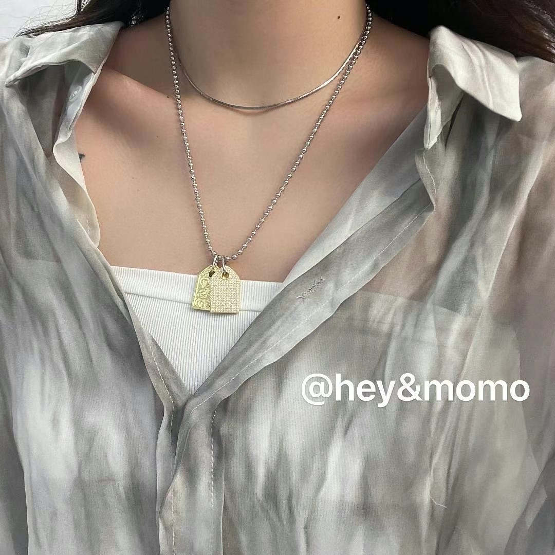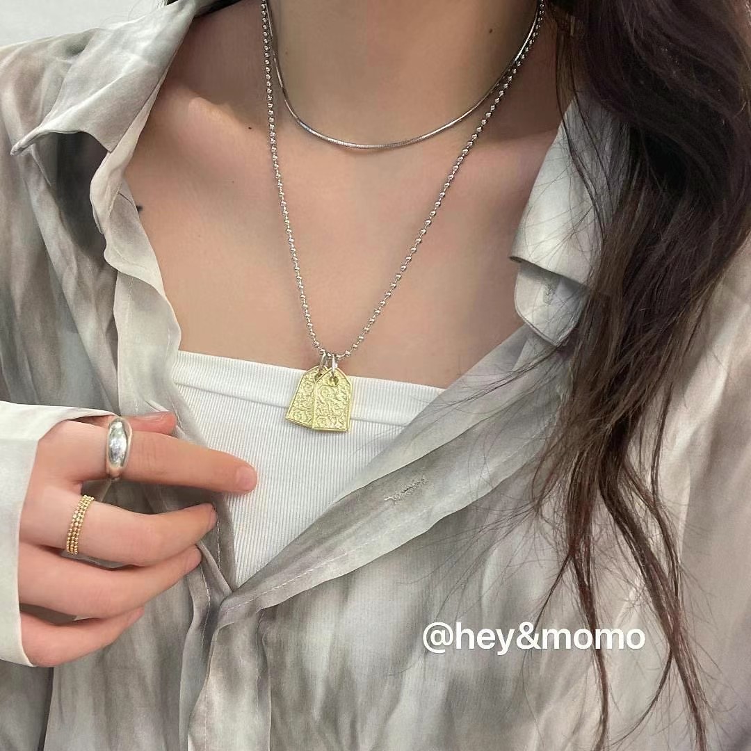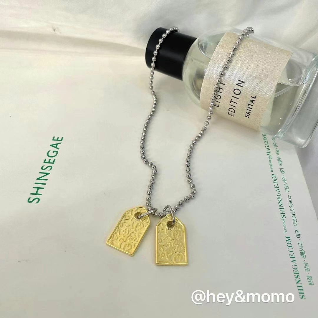 图款 ⚪️925银 银镀金双方牌+银豆豆链 长款项链 62000