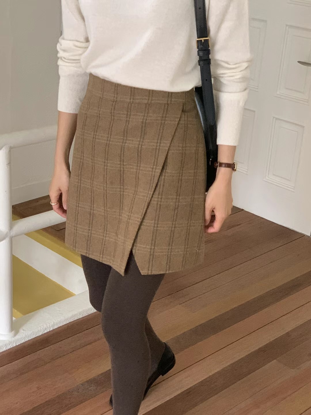 裙子是普通款迷你裙,前面部分做了开叉点缀^^